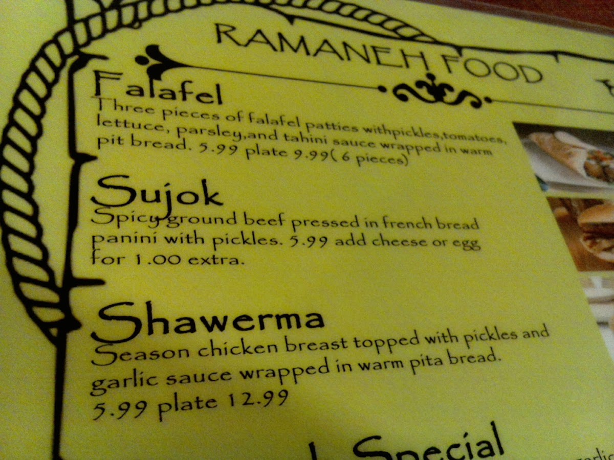 Ramaneh Cafe Menu